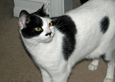 One week Edison vigilantly guarded a closet door. I presumed it was another "weird cat thing" like climbing curtains, getting one's head stuck in a drinking glass and hanging out in the sink like it was a jacuzzi. When I opened the closet door to grab the vacuum, Edison darted in and started rummaging through things. He emerged triumphant with his platypus. Apparently, I had mistakenly put a bag the platypus was 'hiding' in away in the closet.